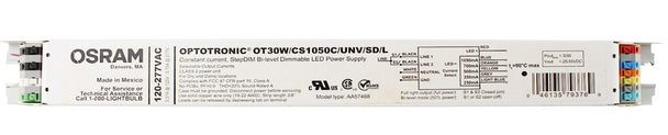 The eldoLED OPTOTRONIC OT30W Step-Dim LED Driver is a versatile, compact constant current solution designed for indoor LED applications requiring simple, reliable dimming control. This 30W driver supports field-selectable output currents of 250mA, 350mA, 500mA, 700mA, or 1050mA, giving installers flexibility to adapt to a variety of LED fixtures without the need for multiple drivers. The 50%/100% bi-level step-dimming function allows straightforward brightness adjustment, making it ideal for commercial, retail, and architectural lighting projects. With a wide 120–277VAC input range and output voltage of 25–55VDC, the OT30W ensures dependable, energy-efficient performance.