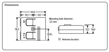 Dimensions 40.4×36.3×14 mm